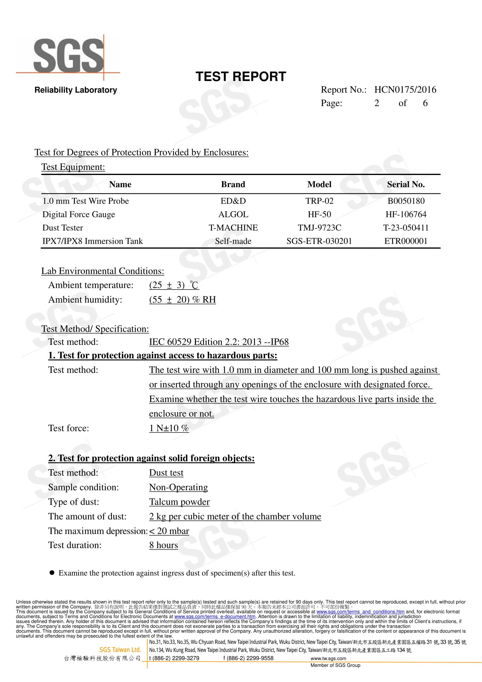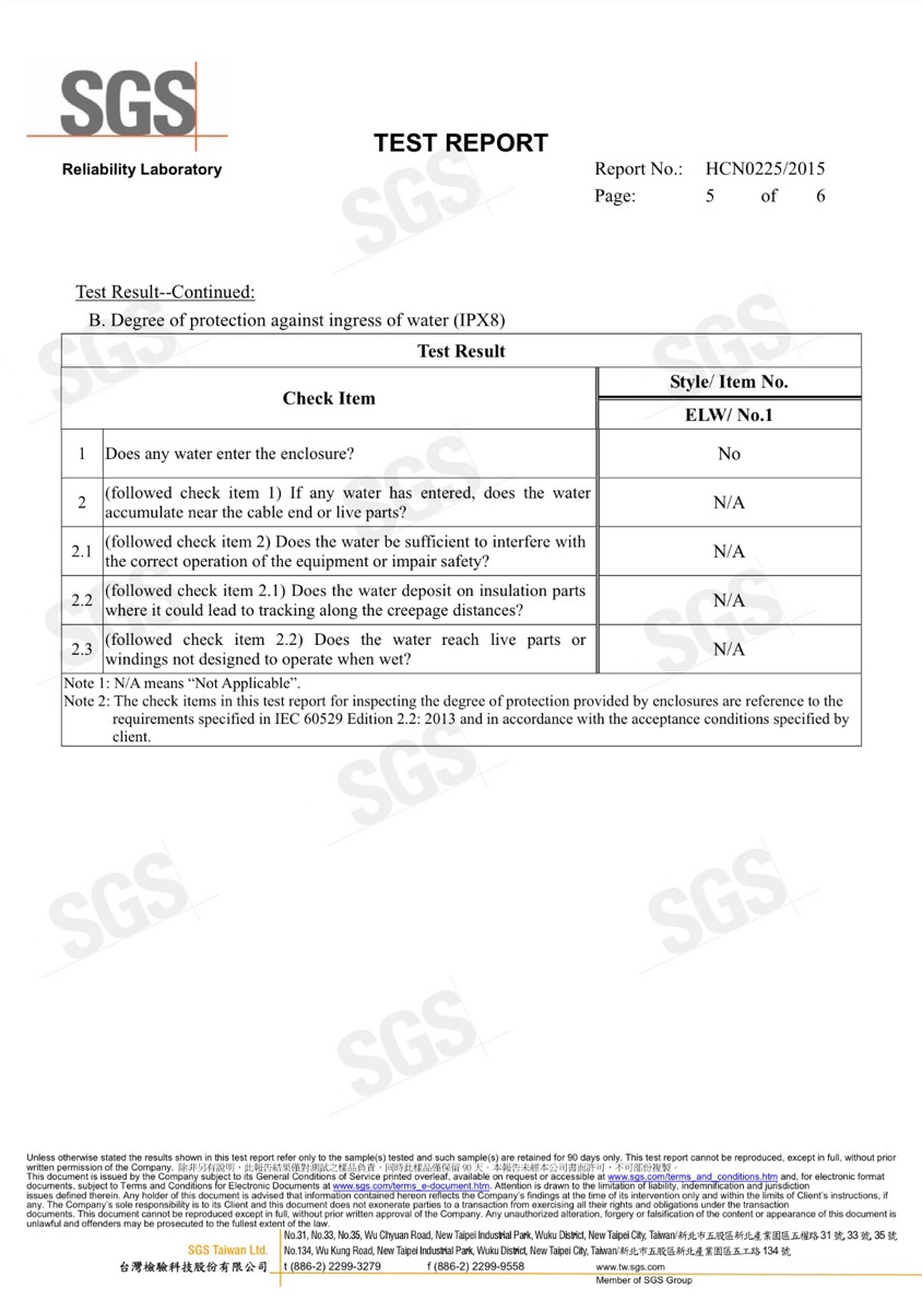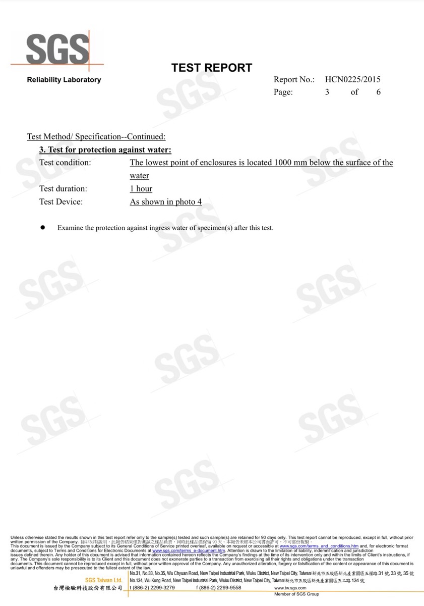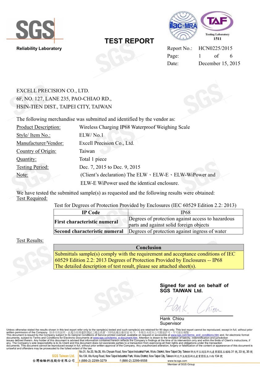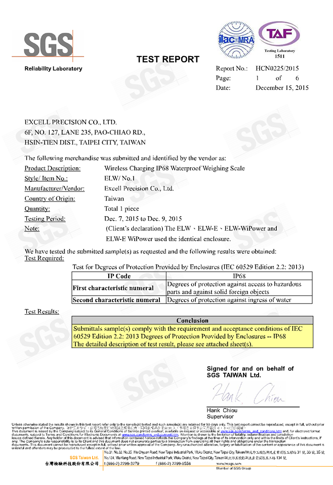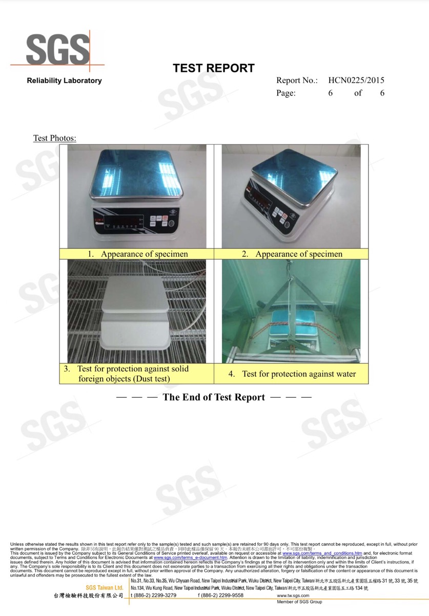 Giấy Chứng Nhận SGS Cho Cân Chống Nước EXCELL
