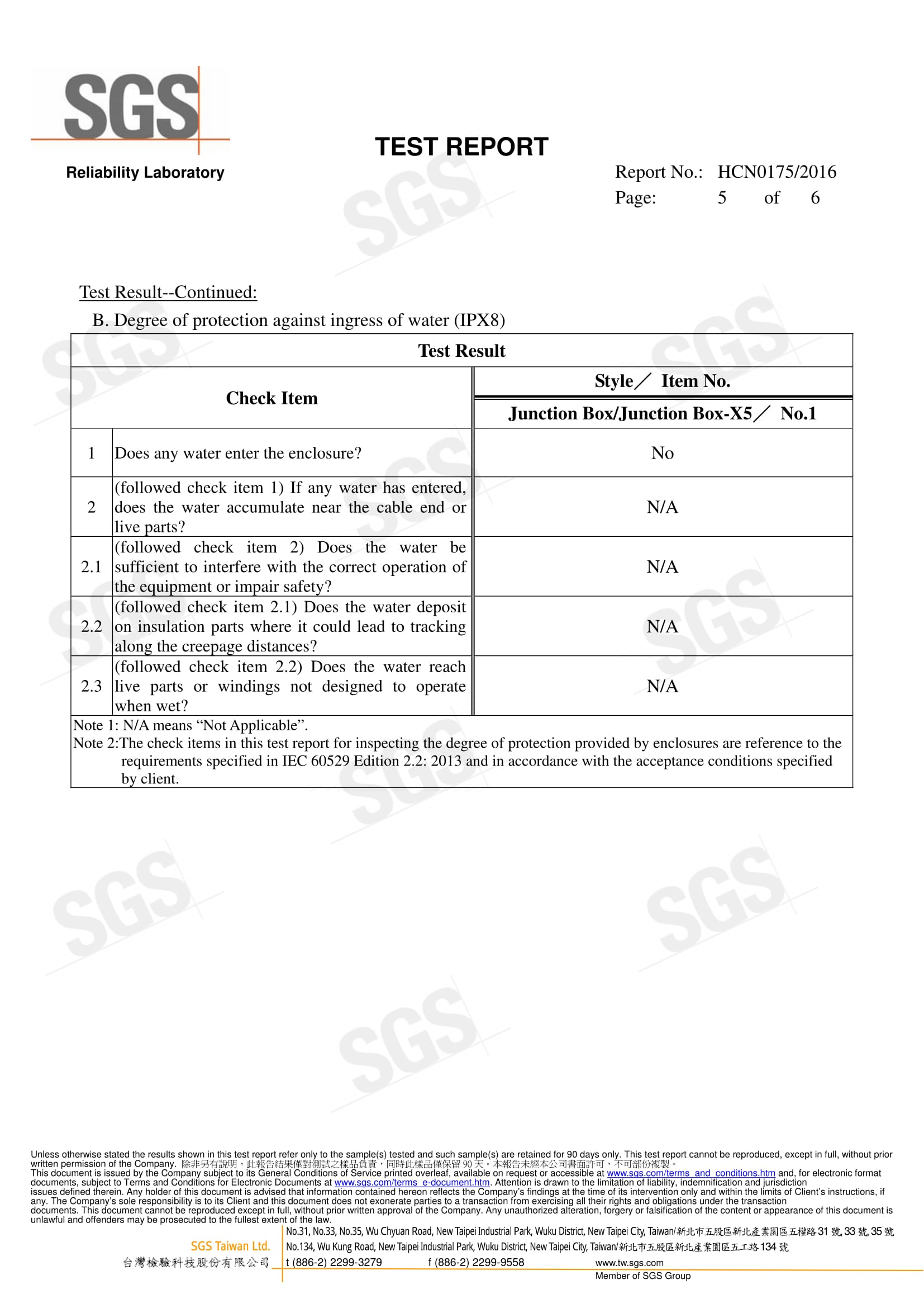 Giấy Chứng Nhận SGS Cho Hộp Nối Chống Nước EXCELL
